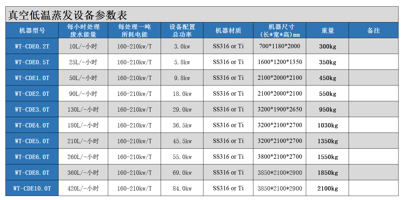 WT-CDE(200L-5000L)是一種利用熱泵的真空蒸發(fā)器,全自動(dòng)控制。特別適用于高危廢水減量化。蒸餾水產(chǎn)量約為200-5000升/天,真空保持約-96KPar,蒸發(fā)溫度保持35℃左右,能源為電和排液需要壓縮空氣。